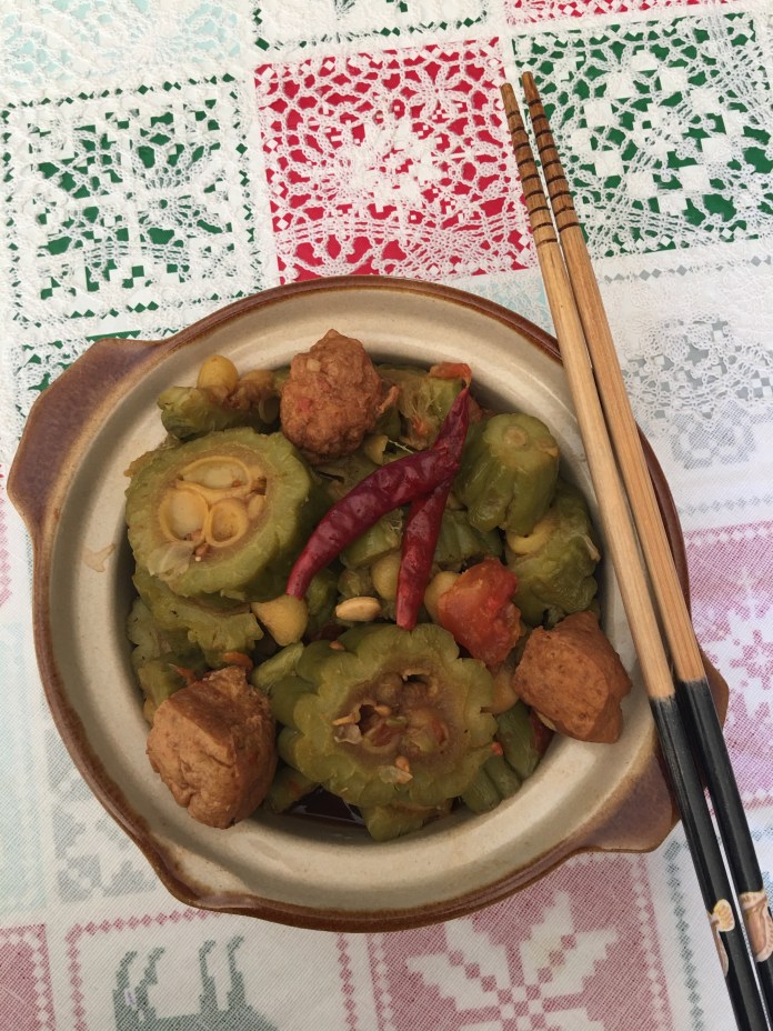 自創版苦瓜、油豆腐煲。自我感覺還不錯呢!