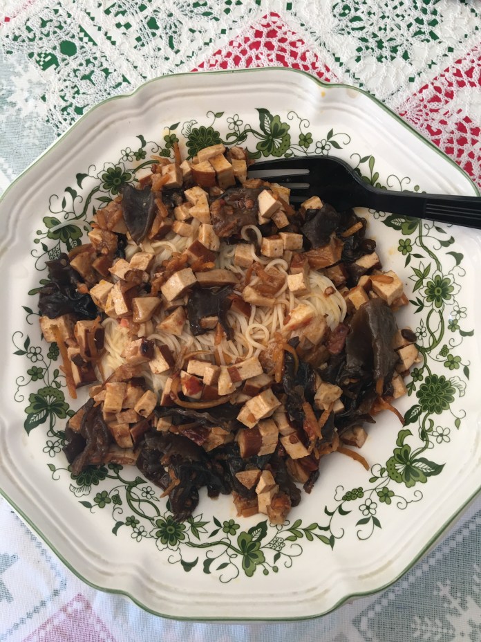 豆乾(必須)、素丸切丁,木耳撕小塊,胡蘿蔔絲,綠豆芽(必須)