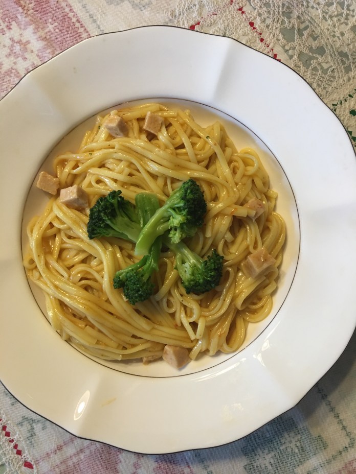 一天,心血來潮,自行試做母親炸醬麵。我利用氷箱裡適當的食材;豆乾(必須)、竹筍、素料切丁,綠豆芽(必須)、黃瓜切絲(必須),此地買不到經典的、香味撲鼻的正宗炸醬,唯有以上好的辣豆瓣醬代替。一舉成功,給自己很大信心。自此後,「炸醬麵」隔三差五即會出現我家餐桌。